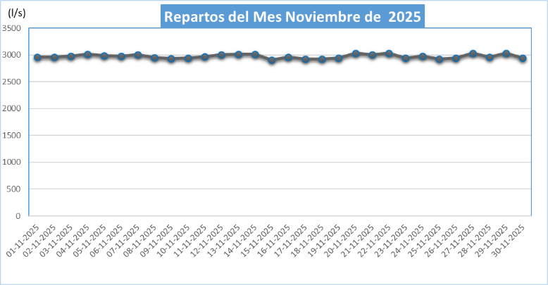 | Fecha | VALORES EXTRAIDOS EN NOVIEMBRE AÑO 2025 (l/s) | Q Repartido | FR | ||||||